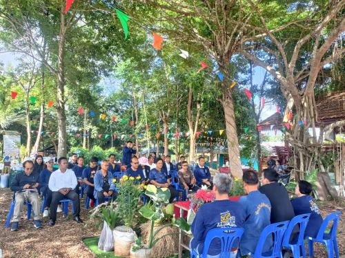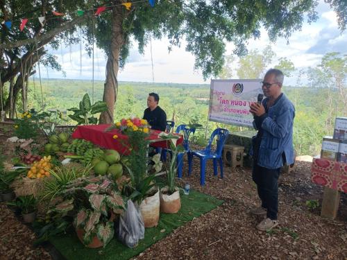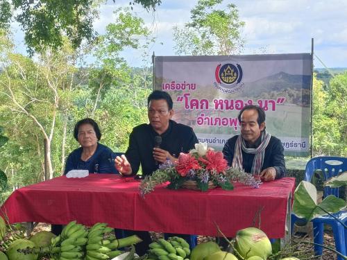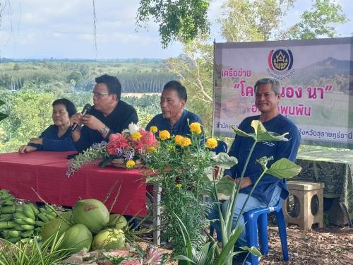 นายประโมทย์ ดำจวนลม พัฒนาการจังหวัดสุราษฎร์ธานี พร้อมด้วยนักวิชาการ เครือข่ายโคก หนอง นา จังหวัดสุราษฎร์ธานี สำนักงานพัฒนาชุมชนอำเภอพุนพิน พัฒนาการอำเภอ เจ้าหน้าที่พัฒนาชุมชน เครือข่ายโคก หนอง นา อำเภอพุนพิน ส่วนราชการ ผู้นำท้องที่ ผู้นำท้องถิ่น และสำนักงานพัฒนาที่ดิน รวม 50 คน ร่วมประชุมและแลกเปลี่ยนเรียนรู้ การขับเคลื่อนโคก หนอง นา ในปัจจุบัน ณ ศูนย์เรียนรู้การพัฒนาพื้นที่ต้นแบบ “โคก หนอง นา” แปลงนางพรรณี สังข์เพชร หมู่ที่ 3 ตำบลบางเดือน อำเภอพุนพิน จังหวัดสุราษฎร์ธานี