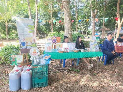 นางพรรณี สังข์เพชร เจ้าของแปลง เล่าความเป็นมา จุดตั้งต้นของการปรับเปลี่ยนทั้งทัศนคติ และพื้นที่จากสวนยางพารา สู่ โคก หนอง นา พร้อมนำทีมศึกษาจุดเรียนรู้ต่างๆภายในแปลง อาทิ กิจกรรมสาธิต การทำน้ำจากเยื่อไผ่ แบ่งปันพันธุ์แฝก สถานีผักเหลียง ฐานเรียนรู้กวางน้อย