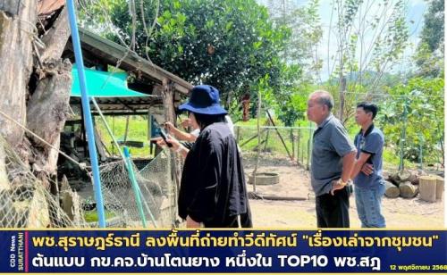 พช.สุราษฎร์ธานี ลงพื้นที่ถ่ายทำวีดีทัศน์ “เรื่องเล่าจากชุมชน”ต้นแบบ กข.คจ.บ้านโตนยาง หนึ่งใน TOP10 พช.สุราษฎร์ธานี