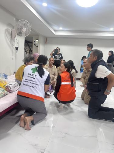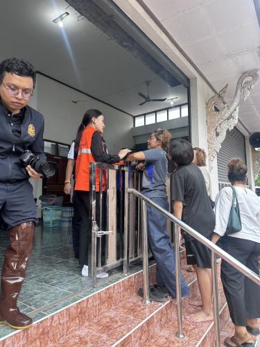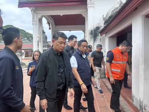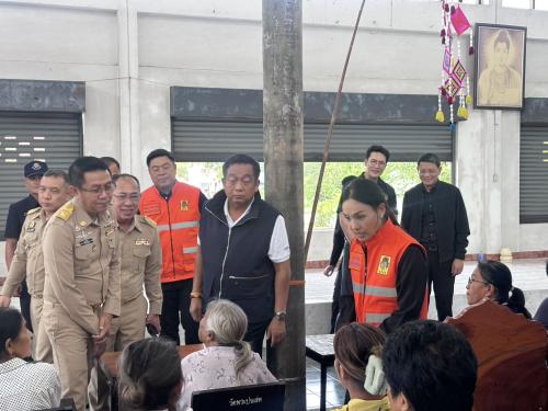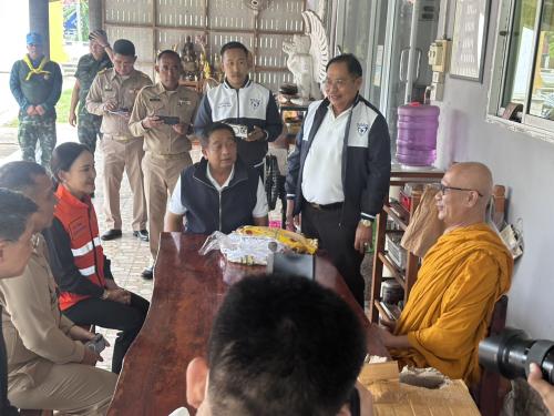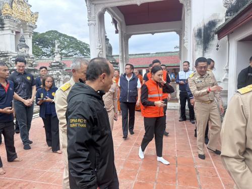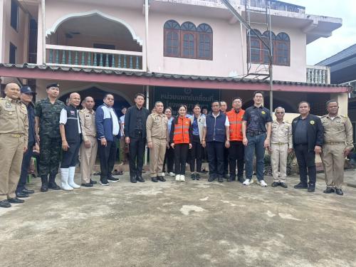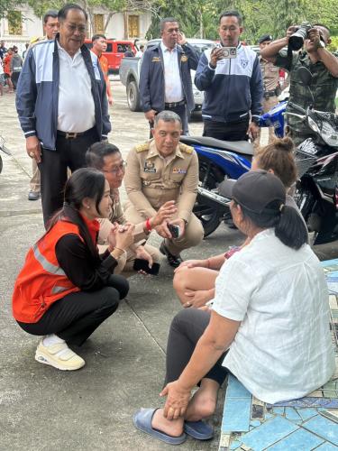 ในโอกาสนี้ รมช.มหาดไทย และคณะ ได้ตรวจเยี่ยมและหาแนวทางแก้ไขปัญหาพื้นที่น้ำท่วม ณ วัดพระบรมธาตุไชยาราชวรวิหาร ซึ่งล่าสุดน้ำได้ลดระดับเข้าสู่ภาวะปกติแล้ว จากนั้นเดินทางไปยังหอประชุมที่ว่าการอำเภอไชยา เพื่อพบปะ รับฟังสภาพปัญหา และให้กำลังใจผู้ประสบภัย ก่อนเดินทางไปเยี่ยมผู้ประสบภัยที่มาให้การต้อนรับ ณ วัดประสพ และชุมชนบ้านสงขลา ตำบลตลาด อำเภอไชยา รวมทั้งพื้นที่บริเวณใกล้เคียง เพื่อให้กำลังใจและรับฟังปัญหาความต้องการ ซึ่งนายชยันต์รัฐ รุ่งโรจวรารักษ์ นายอำเภอไชยา รายงานสถานการณ์ ว่า ตั้งแต่วันที่ 17 พฤศจิกายน 2568 มีฝนตกหนักในพื้นที่อำเภอไชยาประกอบกับมีมวลน้ำจากพื้นที่อำเภอท่าชนะมาสมทบไหลลงสู่คลองไชยา ส่งผลให้น้ำล้นตลิ่งและน้ำท่วมฉับพลัน ระดับน้ำสูงท่วมบ้านเรือนประชาชนในพื้นที่ จำนวน 9 ตำบล 54 หมู่บ้าน ราษฎรได้รับผลกระทบ 17,296 ครัวเรือน 36,916 คน ไม่มีผู้บาดเจ็บและไม่มีผู้เสียชีวิต สถานการณ์ปัจจุบันในพื้นที่ไม่มีฝนตก น้ำในคลองเริ่มลดระดับลง แต่ยังมีน้ำท่วมขังบ้านเรือน ผิวจราจร พื้นที่การเกษตรบางส่วน คาดการณ์ว่า หากฝนหยุดตกจะทำให้ระดับน้ำในพื้นที่ลดลงและเข้าสู่สภาวะปกติ ภายใน 1-2 วันนี้