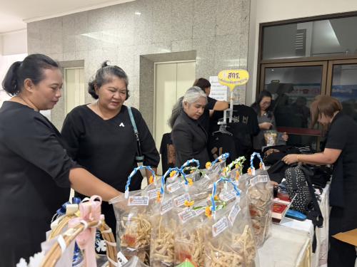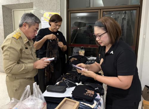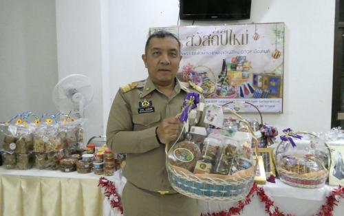 โดยในวันนี้ได้นำกระเช้าปีใหม่จำนวน 13 รูปแบบของคณะกรรมการเครือข่าย OTOP สุราษฎร์ธานี มาจัดแสดงและจำหน่ายในวันประชุมกรมการจังหวัดสุราษฎร์ธานี เพื่อให้หัวหน้าส่วนราชการที่เข้าร่วมประชุมได้อุดหนุนกระเช้าปีใหม่และทำการสั่งจองกระเช้าปีใหม่ล่วงหน้า รวมทั้งมีการจัดแสดงและจำหน่ายผ้าไทยจังหวัดสุราษฎร์ธานีของศูนย์เรียนรู้ต่อเนื่องอย่างยั่งยืนจังหวัดสุราษฎร์ธานี อำเภอเมืองฯ ซึ่งได้รับความสนใจจากหัวหน้าส่วนราชการเป็นจำนวนมาก เป็นการส่งเสริมและสนับสนุนการสวมใส่ “ผ้าไทยให้สนุก” ตามแนวพระดำริสมเด็จพระเจ้าลูกเธอ เจ้าฟ้าสิริวัณณวรี นารีรัตนราชกัญญา และตามพระราชปณิธาน สมเด็จพระนางเจ้าสิริกิติ์ พระบรมราชินีนาถ พระบรมราชชนนีพันปีหลวง ภายใต้โครงการ สืบสาน อนุรักษ์ศิลป์ผ้าถิ่นไทย ดำรงไว้ในแผ่นดิน รวมทั้งกระตุ้นเศรษฐกิจฐานรากให้รายได้กระจายสู่ชุมชน ชุมชนพึ่งตนเองได้อย่างยั่งยืน