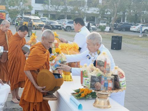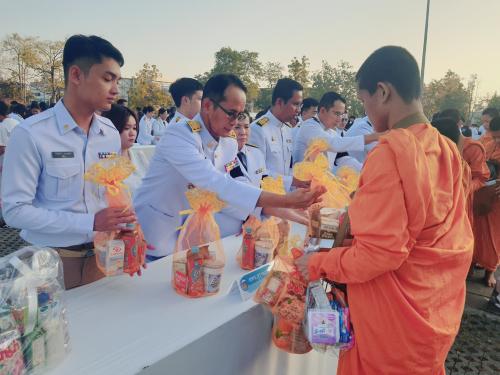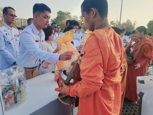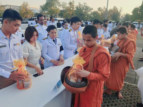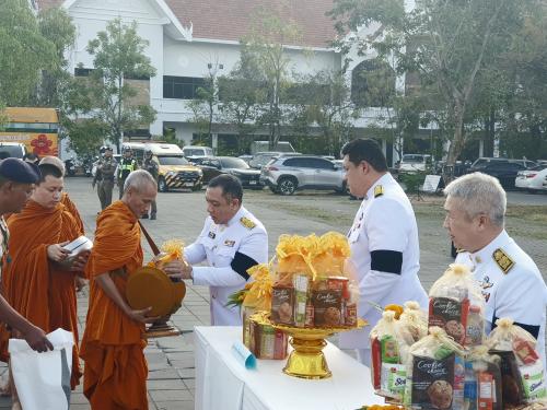 (๑) พิธีทำบุญตักบาตร เวลา ๐๗.๐๐ น. ณ สนามหน้าศาลากลางจังหวัดสุราษฎร์ธานี