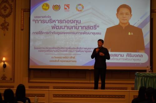 ได้รับเกียรติจากนายสยาม ศิริมงคล อธิบดีกรมการพัฒนาชุมชน ให้เกียรติเป็นประธานเปิดโครงการประชุมเชิงปฏิบัติการเพิ่มประสิทธิภาพบุคลากรกองทุนพัฒนาบทบาทสตรี กรมการพัฒนาชุมชน กำหนดจัดขึ้นระหว่างวันที่ 4 – 6 กุมภาพันธ์ 2569 มีกลุ่มเป้าหมาย จำนวน 166 คน ประกอบด้วยข้าราชการและพนักงานกองทุนพัฒนาบทบาทสตรีจากส่วนภูมิภาค 76 จังหวัด และบุคลากรส่วนกลาง