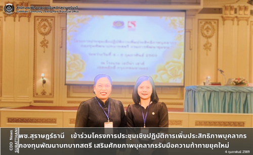 พช.สุราษฎร์ธานี เข้าร่วมโครงการประชุมเชิงปฏิบัติการเพิ่มประสิทธิภาพบุคลากรกองทุนพัฒนาบทบาทสตรี เสริมศักยภาพบุคลากรรับมือความท้าทายยุคใหม่