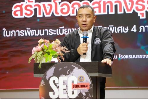 นายจุมพฏ วรรณฉัตรสิริ ผู้ว่าราชการจังหวัดสุราษฎร์ธานี เน้นย้ำให้ผู้ประกอบการในจังหวัดสุราษฎร์ธานีเร่งปรับตัวสู่โลกการค้ายุคใหม่ โดยใช้เทคโนโลยีเพิ่มมูลค่าบริการและไม่ตื่นตระหนกต่อวิกฤต แต่ให้เปลี่ยนความท้าทายเป็นแรงผลักดันในการพัฒนาขีดความสามารถ ซึ่งการจัดอบรมแก่ผู้ประกอบการ 150 รายในครั้งนี้ จะเป็นรากฐานสำคัญในการสร้างเครือข่ายความร่วมมือและต่อยอดโอกาสทางการค้า เพื่อขับเคลื่อนเศรษฐกิจสุราษฎร์ธานีให้เติบโตอย่างมั่นคงและยั่งยืน