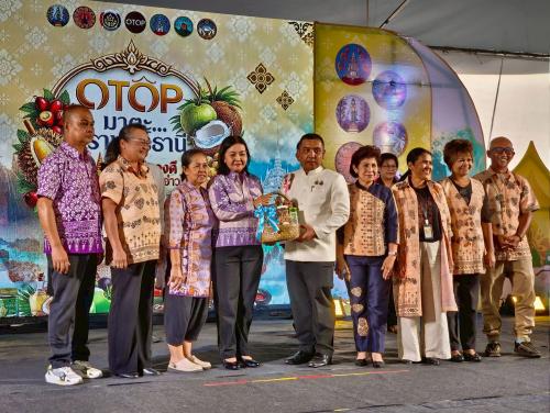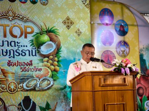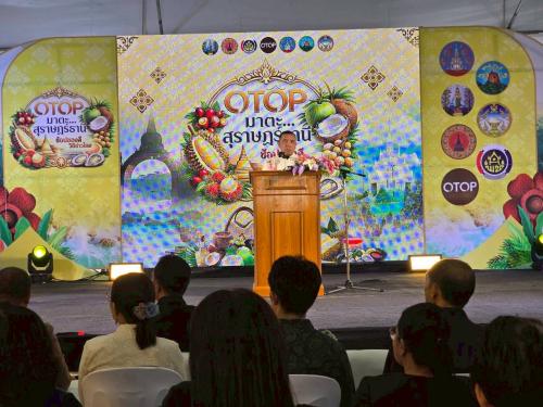 นายพิชัย มณีลาภ พัฒนาการจังหวัดสุราษฎร์ธานี กล่าวว่า การจัดงานครั้งนี้เป็นการขับเคลื่อนนโยบายรัฐบาลในการสร้างความเข้มแข็งให้เศรษฐกิจฐานราก ผ่านโครงการหนึ่งตำบล หนึ่งผลิตภัณฑ์ (OTOP) ซึ่งมุ่งเน้นการพัฒนาผลิตภัณฑ์ชุมชนให้ก้าวสู่ตลาดทั้งในและต่างประเทศ โดยยึดหลัก “ภูมิปัญญาท้องถิ่นสู่สากล” ควบคู่กับการพึ่งพาตนเองและการพัฒนาทรัพยากรมนุษย์