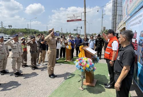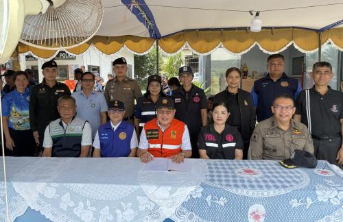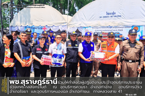 พช.สุราษฎร์ธานี ร่วมให้กำลังใจผู้ปฏิบัติงานประจำจุดบริการประชาชนช่วงเทศกาลสงกรานต์