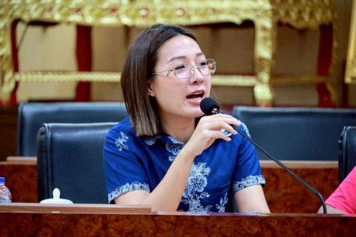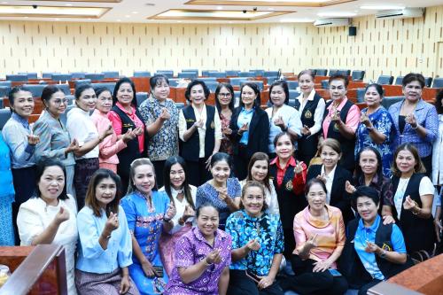 พร้อมกันนี้ นางสาวทิพย์สุคนธ์ ปิ่นสมนาม ผู้อำนวยการกลุ่มงานประสานและสนับสนุนการบริหารงานพัฒนาชุมชน ได้กล่าวแสดงความยินดีกับสตรีทุกคนที่ได้รับการแต่งตั้งเป็นคณะกรรมการพัฒนาสตรีจังหวัดสุราษฎร์ธานี และนางสาวโสธิดา กาญจนะ ในโอกาสได้รับคัดเลือกให้ดำรงตำแหน่งเลขานุการคณะกรรมการพัฒนาสตรีภาคใต้ รวมทั้ง ขอความร่วมมือให้สตรีทุกคน ช่วยกันขับเคลื่อนงานยุทธศาสตร์กรมการพัฒนาชุมชน ประจำปี 2569 ให้บรรลุเป้าหมายตามวิสัยทัศน์กรมการพัฒนาชุมชน